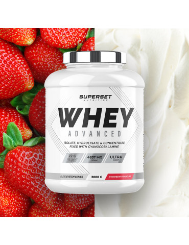 Ingrédients Yaourt à la fraise : concentré de protéines de lactosérum instantané (lait) {concentré de protéines de lactosérum (lait), émulsifiant [lécithines (soja)]} 86%, L-glutamine 5,5%, arômes, chlorhydrate de L-arginine 2%, isolat de protéines de lactosérum instantané (lait) {isolat de protéines de lactosérum (lait), émulsifiant [lécithines (soja)]} 1,4%, concentré de betterave en poudre [maltodextrine, concentré de betterave, acide (acide citrique)], protéine de lactosérum hydrolysée instantanée (lait) {isolat de protéine de lactosérum hydrolysé (lait), émulsifiant [lécithines (soja)]} 0,48%, épaississant (gomme xanthane), vitamine C (acide L-ascorbique), édulcorants (acésulfame K, sucralose), inuline 0,31%, acide (acide citrique), bromélaïne d’ananas (1200 GDU/g) 0,04%, papaïne de papaye (1,5 FIP U/ mg) 0,04%, niacine (nicotinamide), vitamine B6 (chlorhydrate de pyridoxine), vitamine B1 (mononitrate de thiamine), vitamine B12 (cyanocobalamine).