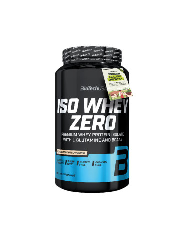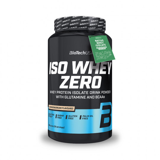 Ingrédients Cookies & Cream : isolat de protéine de lactosérum 82% [isolat de protéine de lactosérum, émulsifiant : lécithines (soja)], L-glutamine 5,5%, écrémeuse [graisse de coco partiellement hydrogénée, lait écrémé en poudre, émulsifiants (E471, E472a), sirop de glucose, saccharose, protéine de lait, stabilisateur (phosphates de potassium), agent anti-agglomérant (phosphates de calcium)], arômes, chocolat en poudre [pâte de cacao, beurre de cacao, cacao maigre en poudre, émulsifiant : lécithines (soja), arôme], émulsifiant : lécithines (soja), épaississants (carraghénane, gomme xanthane), cannelle, sel, anti-agglomérant (dioxyde de silicium), L-Leucine 0,2%, L-isoleucine 0,1%, L-valine 0,1%, édulcorant (sucralose).