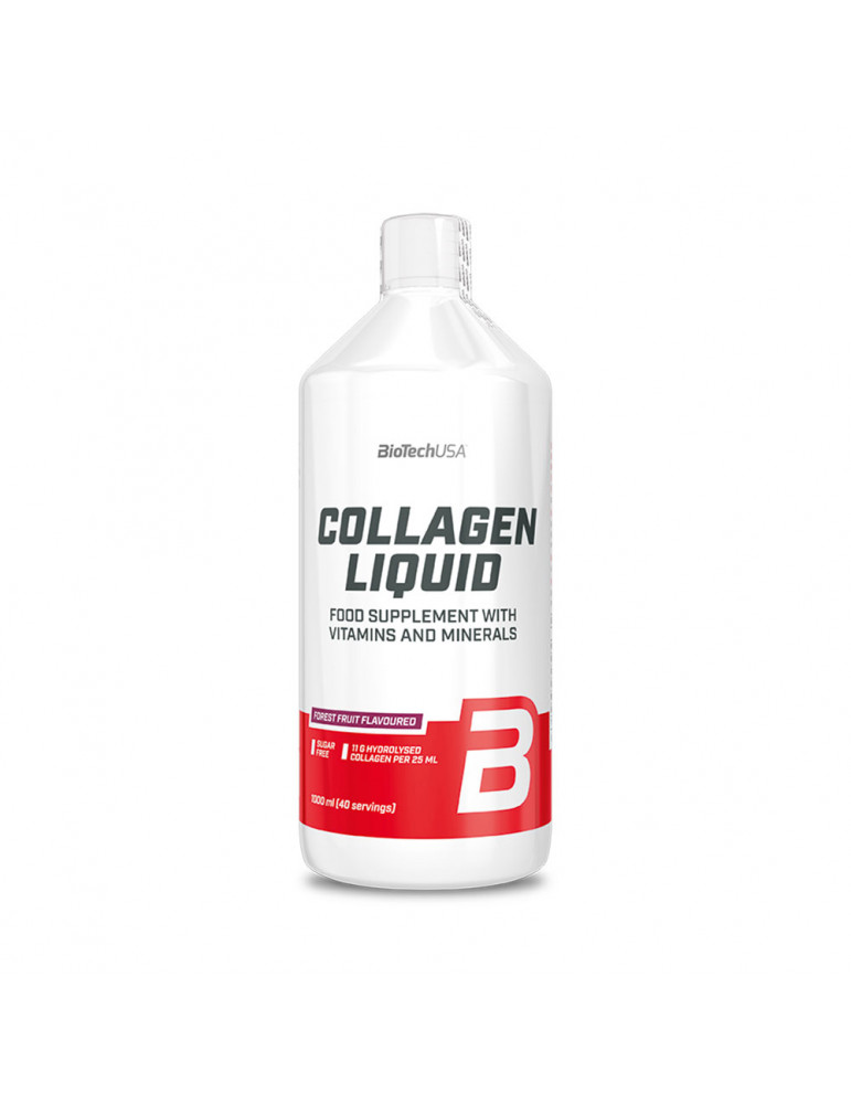 Ingrédients fruits des bois (forest fruit): eau, collagène hydrolysé 44%, acidifiant (acide citrique), acide L-ascorbique, arômes (contient du lait), conservateur (acide sorbique), édulcorants (acésulfame K, sucralose), cholécalciférol, chlorhydrate de pyridoxine, sulfate de manganèse, sélénite de sodium, colorant (carmins).