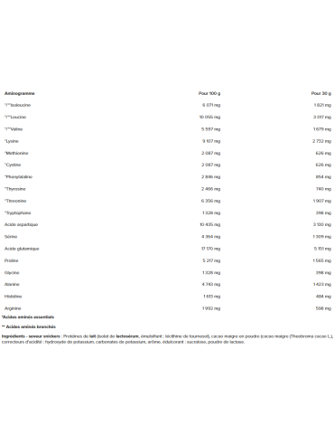 | Aminogramme | Pour 100 g | Pour 30 g |