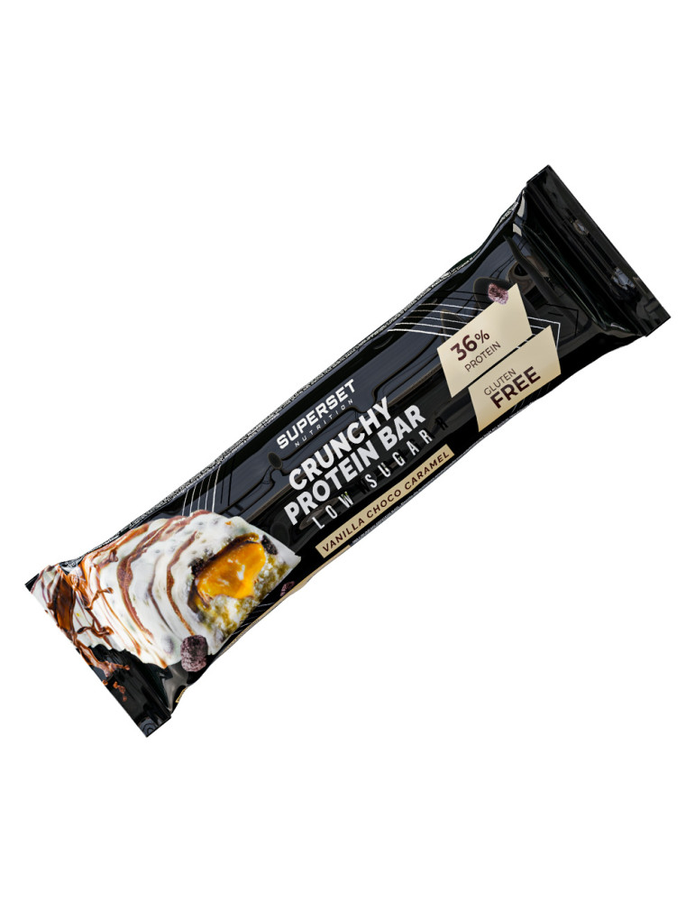 Ingrédients Vanille Choco Caramel : chocolat blanc avec édulcorant (édulcorant (maltitol), beurre de cacao, poudre de lait entier, émulsifiant (lécithine), arôme vanilline) 26,7%, couche goût caramel avec édulcorant (agent de charge (polydextrose), édulcorant (maltitol), matières grasses végétales non hydrogénées (huile de coco, karité), beurre de cacao, denrée alimentaire colorante (concentré de pomme et d’hibiscus), émulsifiant (lécithine), sel, arôme naturel) 12,5%, protéines de lait (protéines de lait, hydrolysat de protéines de lait), humectant (glycérol), protéines de lait (isolat de protéines de whey, caséinate de calcium), crispies de protéines de soja (isolat de protéines de soja, poudre de cacao, amidon de tapioca) 8,33%, hydrolysat de collagène (bovin), eau, protéines de lait (caséinate de calcium), chocolat noir avec édulcorant (masse de cacao, édulcorant (maltitol), beurre de cacao, émulsifiant (lécithine), arôme naturel de vanille Bourbon) 2,50%, arôme, sel, cellulose microcristalline.