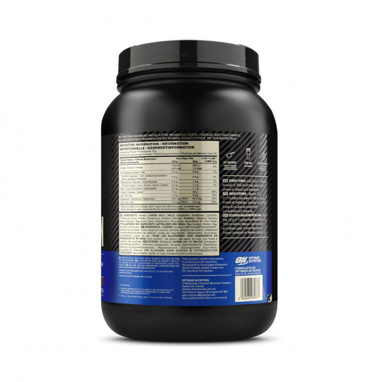Ingrédients Chocolat : caséine micellaire (lait)(88%)[émulsifiant : lécithine de tournesol], cacao maigre en poudre, arômes, chlorure de sodium, stabilisant (carboxyméthylcellulose de sodium), oxyde de magnésium, edulcorants (sucralose, acesulfame-K), oxyde de zinc.