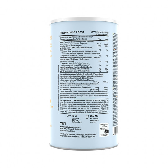 Ingrédients Framboise : collagène de bœuf hydrolysé, maltodextrine, correcteurs d'acidité: E330, E296, arôme, édulcorants: E950, E955, acide hyaluronique, vit. C (acide ascorbique), poudre naturelle de framboise (Rubus idaeus L.), colorant: E120. Ne pas utiliser en cas de grossesse.