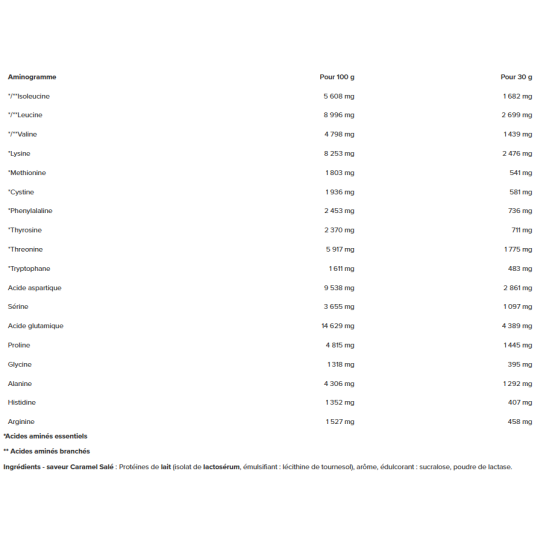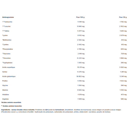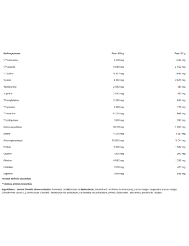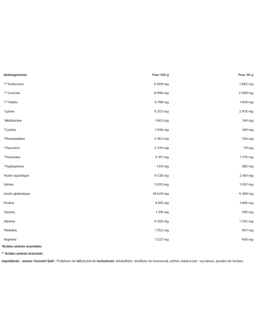 | Aminogramme | Pour 100 g | Pour 30 g |