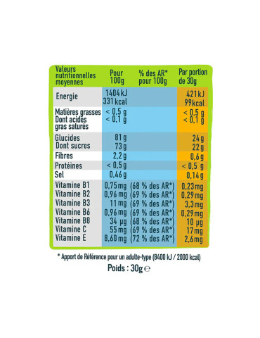 | Pour 100 g | Pour 30 g | |