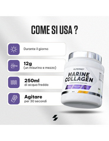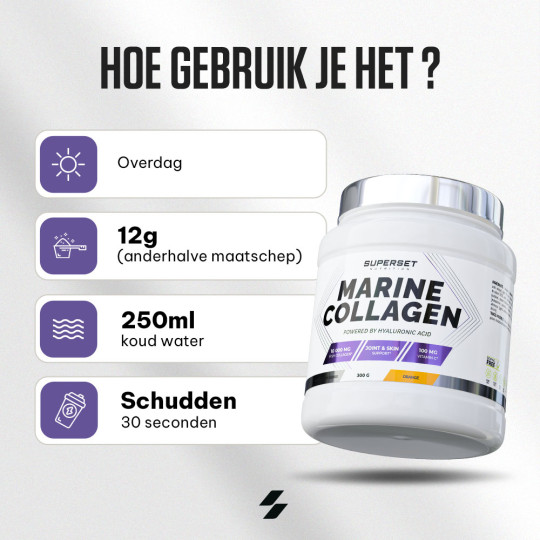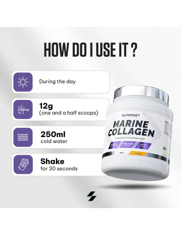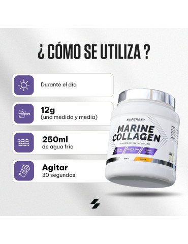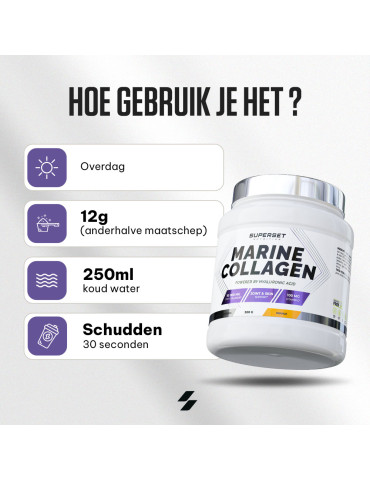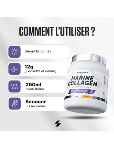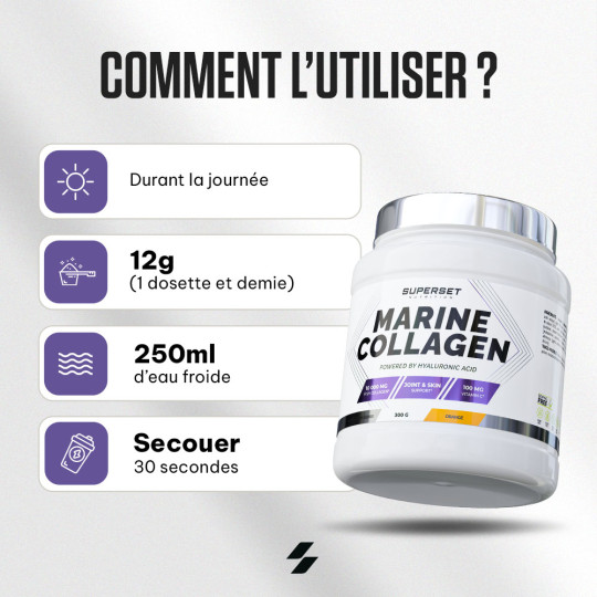 Ingrédients neutre : collagène de poisson 83%, agent de charge (polydextrose), hyaluronate de sodium 0,93%, acide L-ascorbique (vitamine C) 0,83%.
