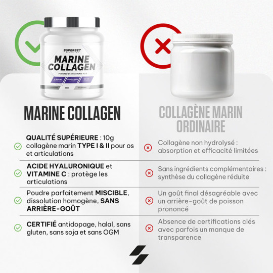 Certifié antidopage, sans sucres ajoutés, sans gluten, sans soja, sans OGM et Halal.