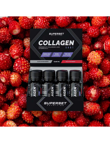 Ingrédients - saveur Fraise des bois : eau, collagène hydrolysé, acide (acide citrique), glycine, L-arginine, acide hyaluronique, acide L-ascorbique, arômes, conservateurs (sorbate de potassium, benzoate de sodium), édulcorants (acésulfame-K, sucralose), colorant (ponceau 4R****), chlorhydrate de pyridoxine. ****Peut avoir des effets indésirables sur l’activité et l’attention chez les enfants.